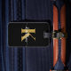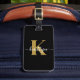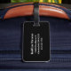 This simple, elegant black luggage tag with your first name in a trendy script font in white and your first initial in a modern cap font in gold on one side and your name, address and phone number on the other would look fabulous on your suitcases. It's stylish and trendy and yet very classic.