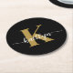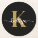 These simple, elegant black round paper coasters with your first name in a trendy script font in white and your first initial in a modern cap font in gold are perfect for keeping your tables and counters free from water rings. They absorb droplets so you don't have to worry when your entertaining or enjoying a drink. They're stylish and trendy and yet very classic.