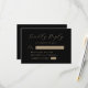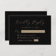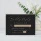 This elegant modern wedding RSVP enclosure card features gold-coloured text on a black background. The title "Kindly Reply" appears in beautiful handwriting script, with customisable text below in sans serif font. The reverse side is solid black.