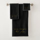 A beautiful black and gold design incorporating signature script font typography. A classy and stylish bath towel set design ideal for anyone. Customise the gold monogram text and script typography bathroom towel set and make it your own!