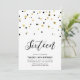 Celebrate your special day with this simple minimal 16th birthday party invitation. This design features a stylish lettering script "Sixteen" with hexagon-shaped confetti with a black & gold colour combo. More designs available at my shop BaraBomDesign.