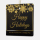 Chic corporate Christmas ornament with Happy Holidays written in elegant gold cursive script under a beautiful border of snowflakes falling on a modern black holiday label. Customise this professional holiday sticker with your company or business name.