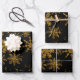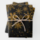 Black & Gold Snowflakes Stars Merry Christmas Wrapping Paper Sheet