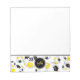 This fun soccer themed notepad features randomly arranged black, gold & white soccer balls of varying sizes at its bottom edge with easy-to-personalise name & monogram on a coordinating black circle pendant plus jersey number on one of the soccer balls - by katz_d_zynes