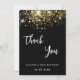 A black background, decorated faux gold glitter, sparkles. On front large hand lettered script and the text: Thank You.