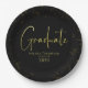 Black Gold Splatter Graduate Calligraphy Party Paper Plate