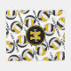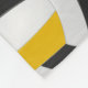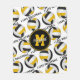 This sporty volleyball themed fleece blanket features a mirrored pattern of volleyballs with black, gold and white panels and the sporty font text "I love volleyball" in black that stretches between the angled rows of volleyballs - athlete name and monogram can be personalised on the large overlying circle pendant - background is customisable white - easily delete the "I love volleyball" text lines, if desired, or replace the monogram with the player's varsity letter or jersey number - by katz_d_zynes