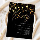 A modern, stylish invitation for a 60th birthday party. Black background and the word Sixty written with large faux gold letters. Decolrated with golden stars. Personalise and add a name and party details.