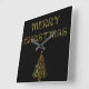 Black Background and Shiny Golden Stars Christmas Tree with Gold Typography Merry Christmas. Elegant Wall Clock