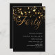 A modern, stylish invitation for a 40th birthday party for both him and her. Decorated with golden stars. Black background and the word Forty written with large faux gold letters. Personalise and add a name and party details.