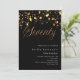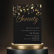 A modern, stylish invitation for a 70th birthday party for both him and her. Decorated with golden stars. Black background and the word Seventy written with large faux gold letters. Personalise and add a name and party details.