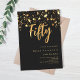 A modern, stylish invitation for a 50th birthday party for both him and her. Decorated with golden stars. Black background and the word Fifty written with large faux gold letters. Personalise and add a name and party details.