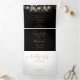 All in one black and gold tri-fold wedding invitation featuring pretty string lights and elegant typography. The invitation includes your celebration guest information details and a detachable RSVP card. Designed by Thisisnotme©