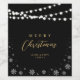 Black & Gold String Lights Snow Merry Christmas Wine Label