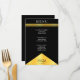 Black wedding reception menu card with gold colour block geometric triangle and stripes. Elegant typography for an expensive look at an affordable price. Customise the meal list and personal details. Great for a modern minimalist wedding theme with a touch of style.