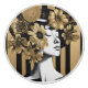Black Gold Stripes Woman Flowers Knob Ceramic Pull