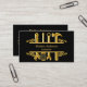 A black background, with a faux gold tools. Personalise and add your business name and a text on front. Golden letters