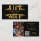 A black background, with a faux gold tools. Personalise and add your business name and a text on front. Golden letters