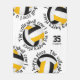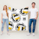 This cool volleyball themed fleece blanket features 5 randomly arranged black, gold and white volleyballs with the text, "The volleyball court is my happy place" in gold encircling each volleyball in a playful typographic font, all on a white background - her name and jersey number are customisable - by katz_d_zynes