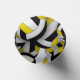 This volleyball themed canned beverage cooler features a pattern of seemingly endless, randomly arranged black, gold & white volleyballs on a white background - personalise with the athlete's monogram - by katz_d_zynes