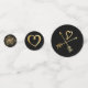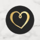 Add some sparkle to the wedding reception or rehearsal dinner table with this elegant table confetti set. Featured images are a gold line drawn heart and arrows, a 2nd gold heart, and your custom text in gold. The remaining image is a repeated star and glitter background. Everything is placed on a dramatic black background. Classy!