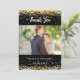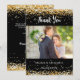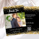 A modern wedding Thank You photo card. A black background decorated with faux gold glitter, sparkles. Personalise and add your photo and thank you note.