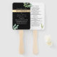 Modern, elegant, botanical, chic, gold and black wedding program hand fans, with watercolor greenery and simple calligraphy script.