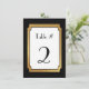 Elegant custom wedding reception flat card table number. Made in a handsome Art Deco style black frame around a thinner gold tone frame that borders the white text area. Black text is ready to personalise for each table at your wedding.