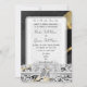 A pretty vintage inspired design, with white filigree lace and floral flower bouquet on a sleek elegant and chic black damask pattern background with a modern golden swirl design and stylish fleur de lys, easily customise with the bride and grooms names and monogram initials for your special wedding day celebrations. PLEASE NOTE the gold is not foil metallic or shiny.