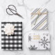 Black, Gold & White Plaid, Stripes and Snowflakes Wrapping Paper Sheet