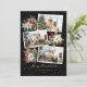 Beautiful black and gold photo Merry Christmas card featuring white poinsettia flowers, holly, red berries and greenery. Easily personalise this watercolor holiday card with your photos and text.
