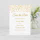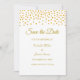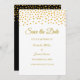 Elegant gold metallic look confetti on black and white Save the Date Wedding Invitation Card. Lux ury gold confetti on black and white Save the Date cards.