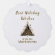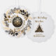 This elegant paper ornament card can be used as a greeting to friends and neighbours, or as a pretty gift tag. It features a decorative black and gold tree bulb hanging from a pretty seasonal wreath. Dark gold curved text says "MERRY CHRISTMAS". The back of the card has your own custom text in three text fields separated by a stylistic black and gold Holiday tree. Be sure to see the matching products in our store.