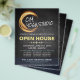 YOGA Massage Therapy Studio / Beauty Salon Open House Flyer Template - Elegant Black and Gold Glowing Circular ZEN Symbol Light.