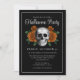 Black Gothic Floral Skull Halloween Invitation.