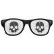Cool party glasses with fanged skulls in black on white lenses with a black frame. Great for the Gothically inclined or for Halloween.