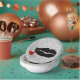 A graphic design of a black goth vampire kiss by artist/designer Charmaine Paulson on paper bowls,