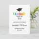 This is a modern and simple design with a black graduation cap, yellow gold tassel, black text and white background. Colourful "Graduate” image. Yellow gold is printed colour, not metallic foil.
