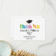 This is a simple and modern design with a black graduation cap, yellow gold tassel, black text and white background. Colourful "Thank you” image. Yellow gold is printed colour, not metallic foil.
