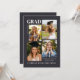 Celebrate your graduation with this black background Modern Graduation Invitation Card with Photos. Designed with a sleek, contemporary layout, this card features space for four photos, allowing you to share your favorite senior moments in one stylish design. The back of the card allows for a grad party invitation.