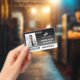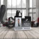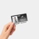 Employee ID badge with a clean minimalist design in black and white. Add a photo of the employee along with name and profession against a black gradient background. Personalise further with your business logo and bar code.