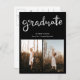 Black Graduate Elegant Script | Grad Two Photos Announcement Postcard