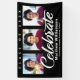 Announce to the world that your favourite grad has reached their milestone with this simple, modern, minimal personalised 3 photo banner. Bold, graphic, white handwritten script calligraphy, sans serif typography and 3 photos of your choice overlay a dramatic black background. Customise the text with your graduate’s name, school name, class year and add your photos. Choose from numerous sizes as well as indoor or outdoor options. Matching invites, thank you cards, address labels, hand signs and other graduation goodies are also available in this trendy and minimalist collection. Guaranteed to preserve cherished memories of their special occasion!