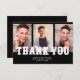 Black graduation 3-photo "Thank you" card personalised with your photos, your name, school name, and graduation year. Contact me for assistance with your customisations or to request additional matching or coordinating Zazzle products for your party.