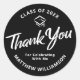 Black Graduation Bold White Script Cap Thank You Classic Round Sticker