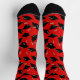 Black graduation caps thrown in the air make a nice design on these colourful, fun socks for a parent, teacher or student to wear for graduation from high school, college, or university or to a graduation party following the graduation ceremony. Black graduation caps on a red background.