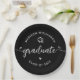 Black Graduation White Modern Script Hearts Cap Paper Plate