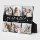 Create a sweet gift for a beloved grandma or grandpa with this beautiful photo collage plaque. "Grandkids make life grand" appears in the centre in white calligraphy lettering on a black background. Customise with 6 photos of their grandchildren.