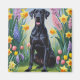 Black Great Dane Dog Spring Flowers Painting Magnet