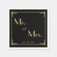 Black and gold Mr. and Mrs. Great Gatsby art deco wedding napkins with customisable text - you can change text and wedding date.